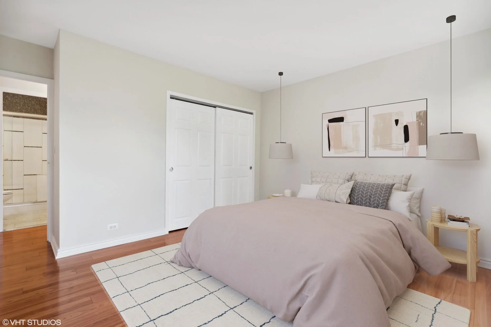 Upon entering this charming condo, you are welcomed by the natural light & sleek hardwood floors that take you to the open-concept kitchen & comfortable living space. The kitchen boasts stylish white cabinetry, granite countertops, & stainless steel appliances. The spacious kitchen island provides the perfect breakfast bar with ample room for food prep & additional storage. The designated dining area offers a cozy & inviting space to entertain guests at your next dinner party or sit down for your morning coffee. The spacious living room is encompassed by south & east-facing windows that offer a scenic tree-lined view, where you can enjoy a front-row seat to Chicago’s ever-changing seasons.