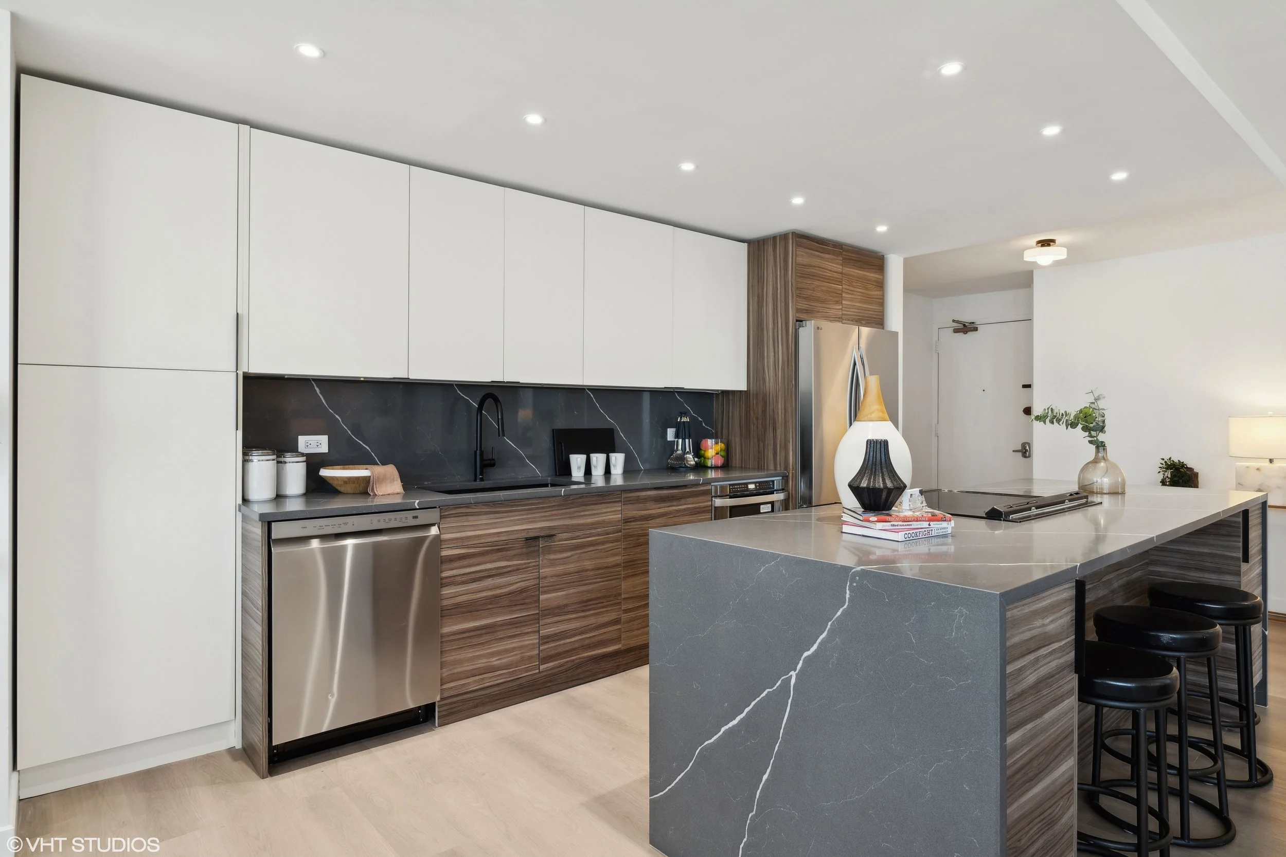 Step into this high-rise haven in the vibrant Buena Park neighborhood. This chic, modern home was recently renovated from top-to-bottom, & not one detail was missed in its redesign. High-end finishes & sweeping views of the city’s west side & the lake make this a true modern oasis.